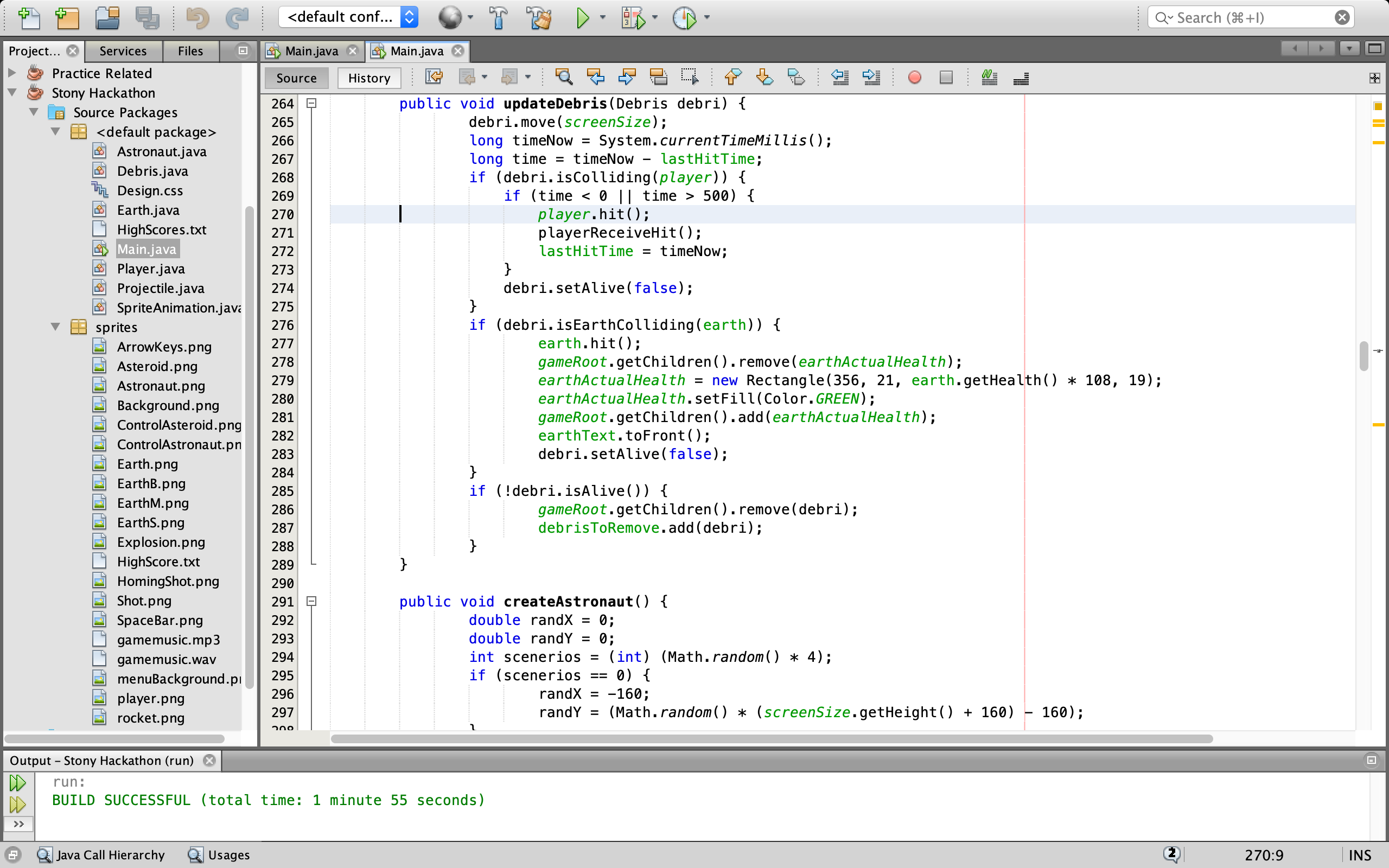 Created a game for the 2018 Hackathon by SBU Computing Society with the theme of space. The point of the game is to get the highest score possible by destroying asteroids heading towards the earth and saving astronauts. The game includes game music that used multi-threading.